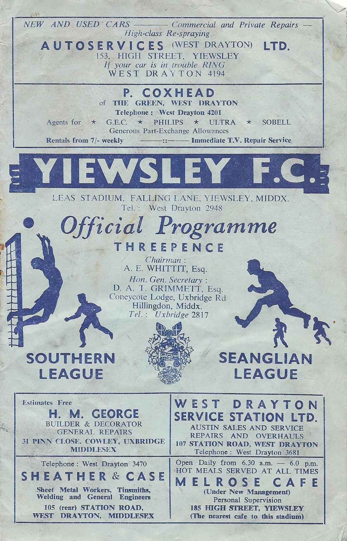 1961/62 17 Jan 1962 Yiewsley (H) Southern League Division One 1-0 611 Programme