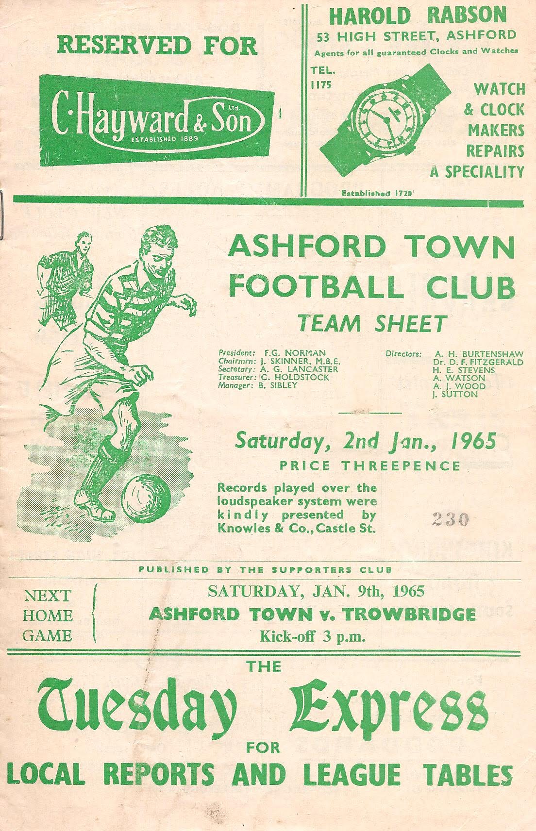 1964/65 02 Jan 1965 Hillingdon Borough (H) Southern League Division One 1-3 480 Programme