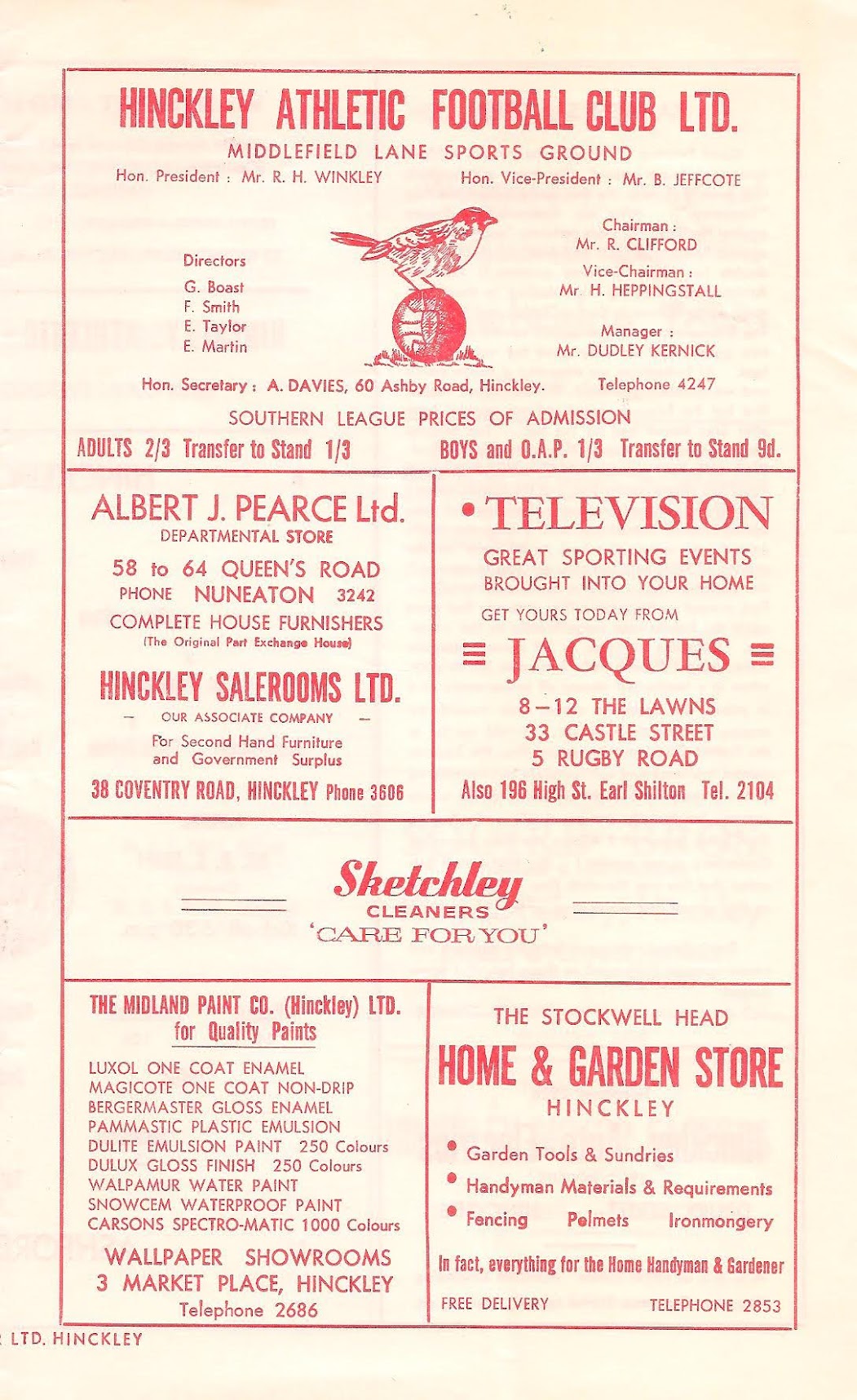 1965/66 26 Feb 1966 Hinckley Athletic (H) Southern League Division One 2-2 415 Programme