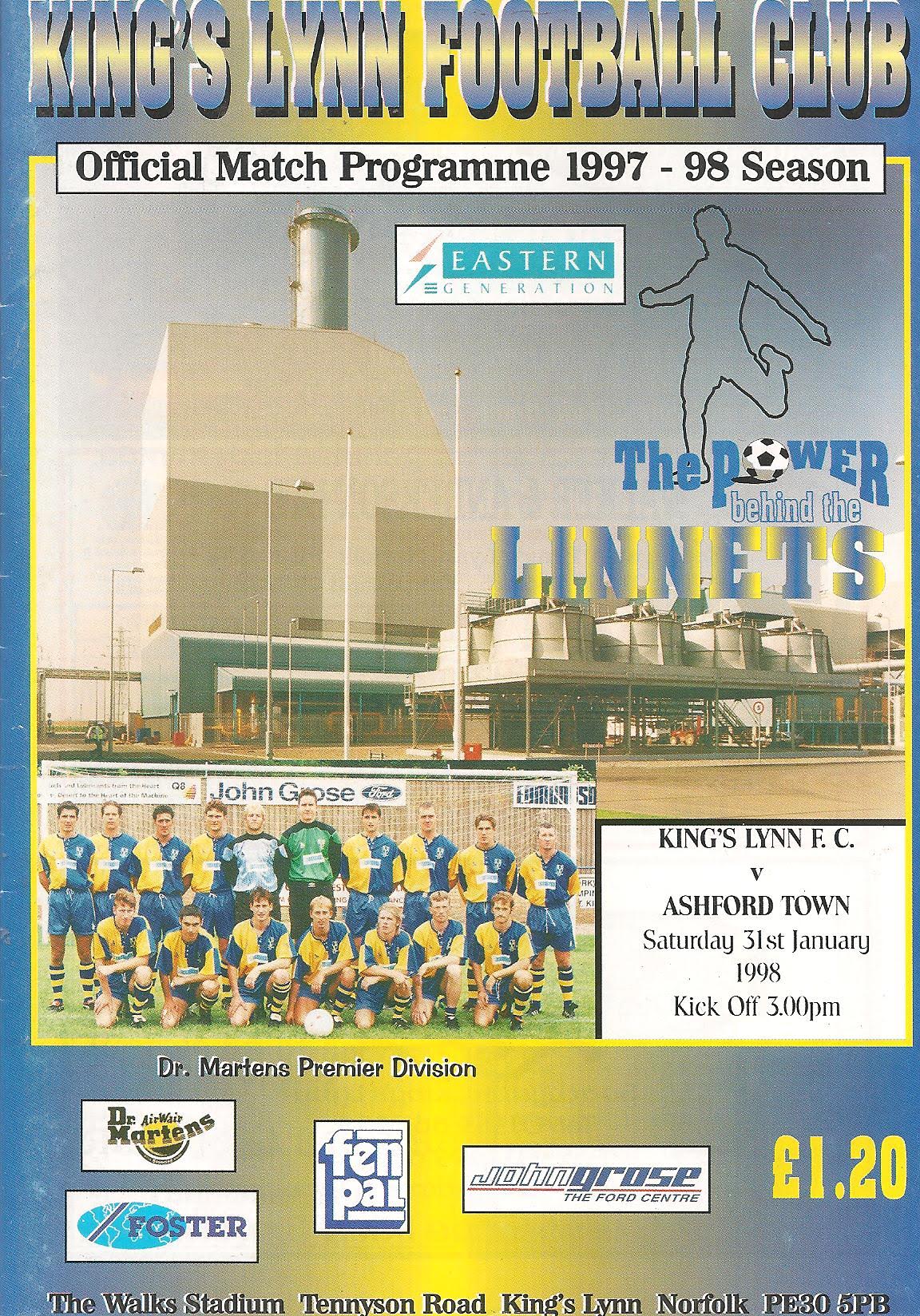 1997/98 31 Jan 1998 Kings Lynn (A) Southern League Premier Division 1-2 893 Programme
