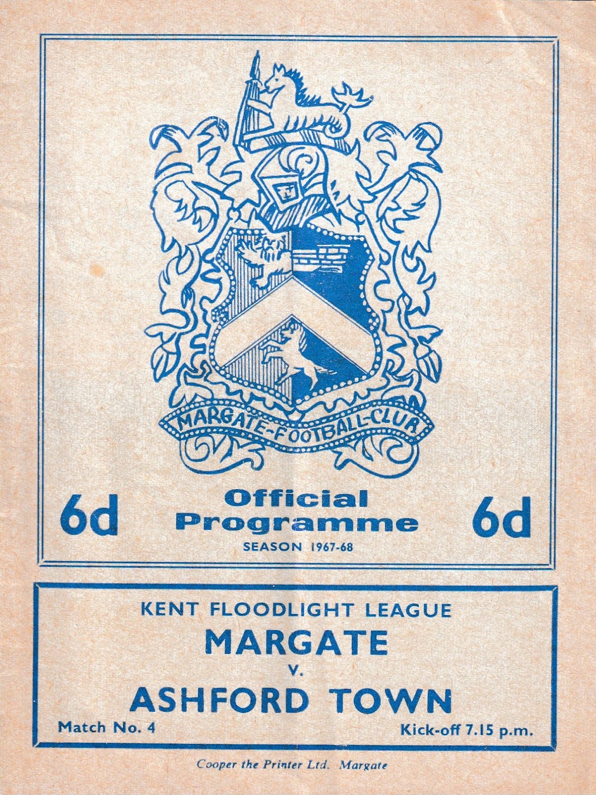 1967/68 04 Apr 1968 Margate (H) Kent Floodlight Cup 0-6 237 Programme