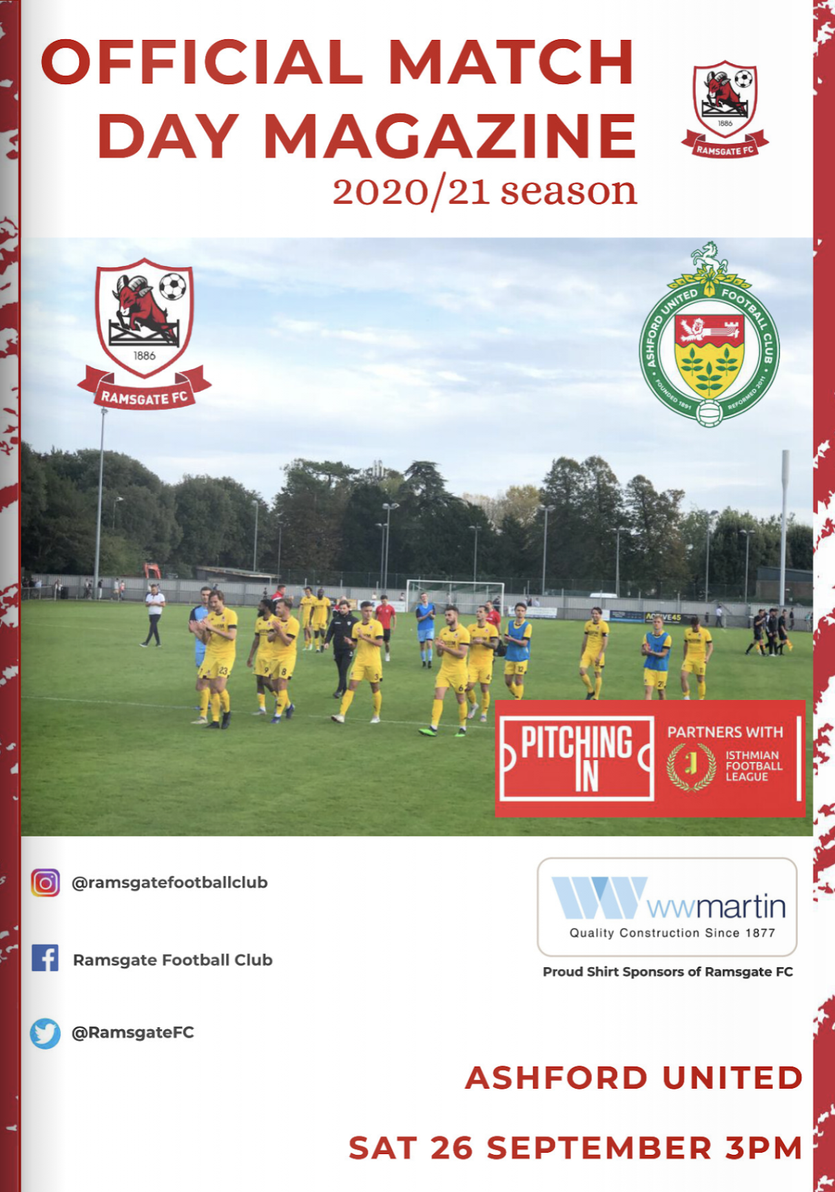 2020/21 26 Sep 2020 Ramsgate Athletic (A) Isthmian League South East Division 2-1 396 Programme