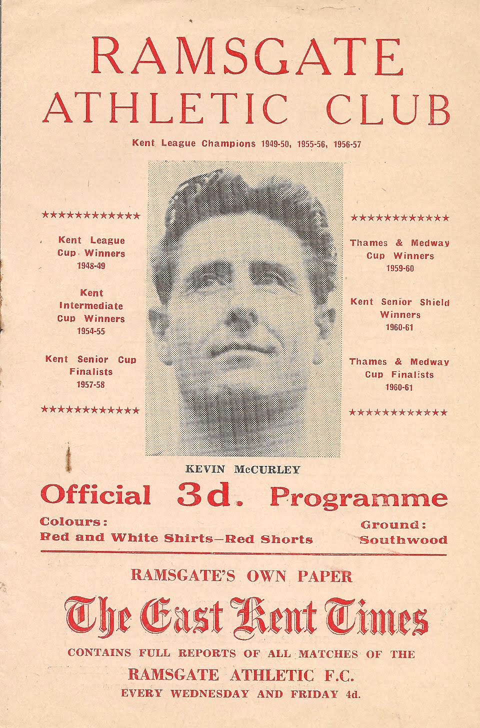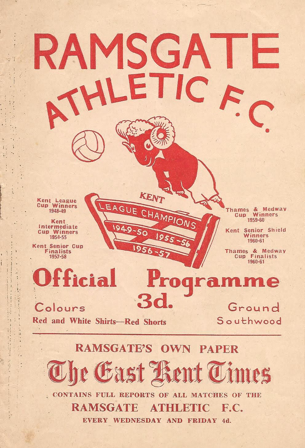 1956/57 01 Dec 1956 Ramsgate Athletic (A) Kent League Division 1 0-2 --- Programme