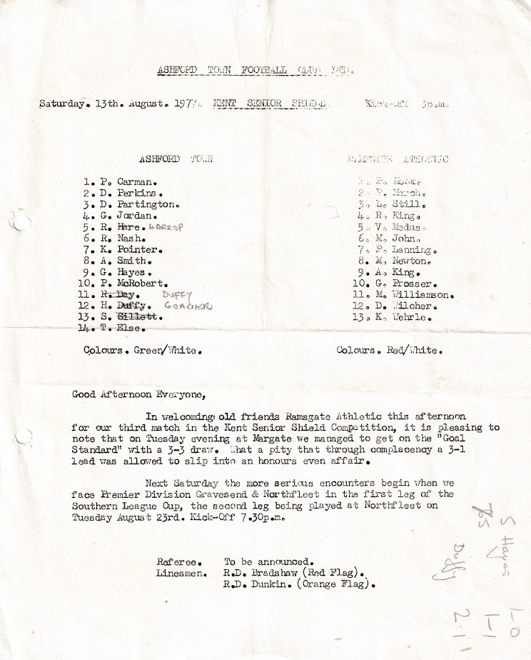 1977/78 13 Aug 1977 Ramsgate Athletic (H) Kent Senior Shield 2-1 131 Programme