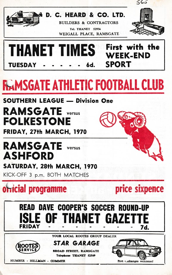 1969/70 28 Mar 1970 Ramsgate Athletic (A) Southern League Division One 1-1 535 Programme