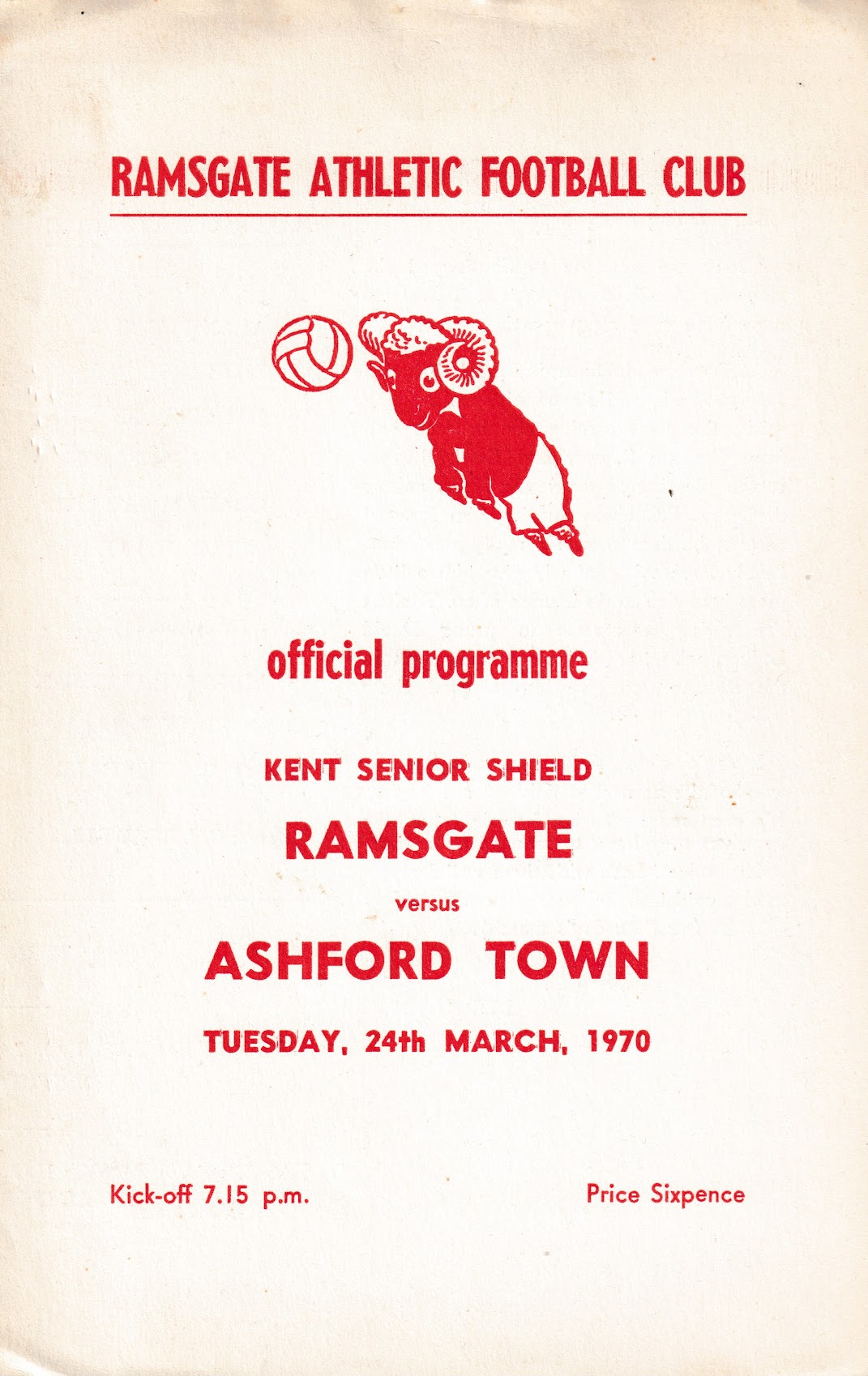 1969/70 24 Mar 1970 Ramsgate Athletic (A) Kent Senior Shield 0-0 198 Programme