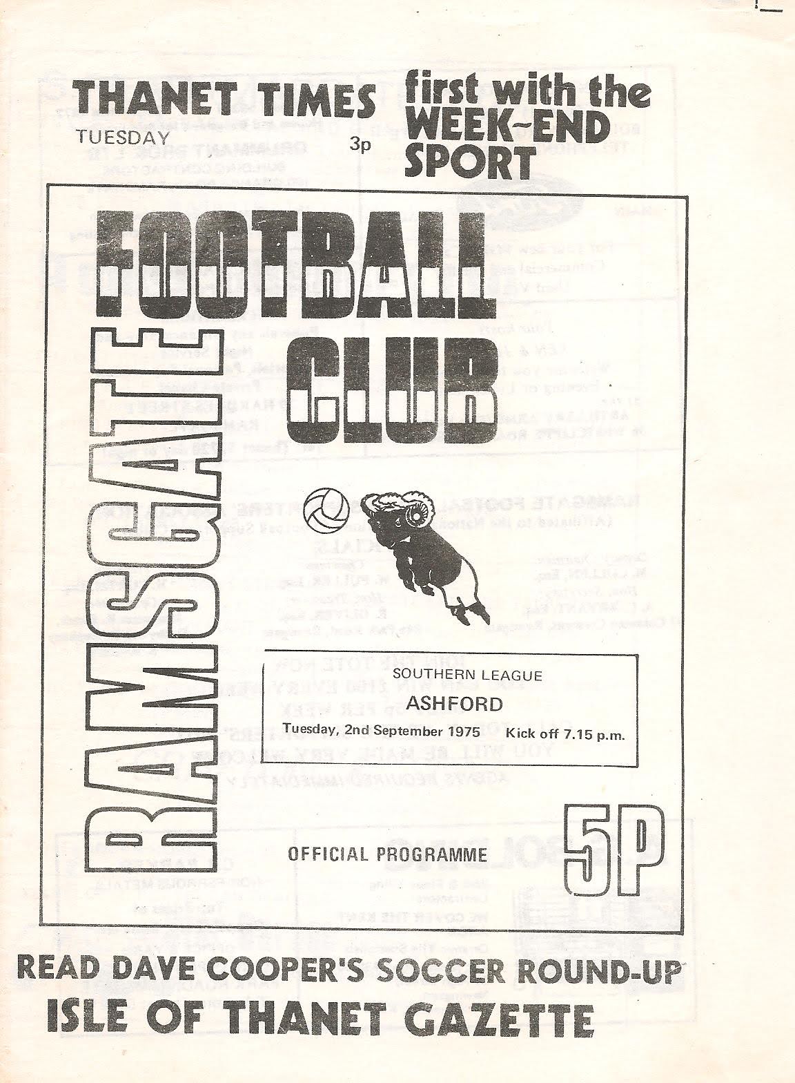 1975/76 02 Sep 1975 Ramsgate Athletic (A) Southern League Cup 0-1 194 Programme