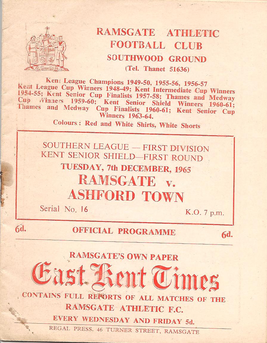 1965/66 07 Dec 1965 Ramsgate Athletic (A) Kent Senior Shield 2-4 --- Programme