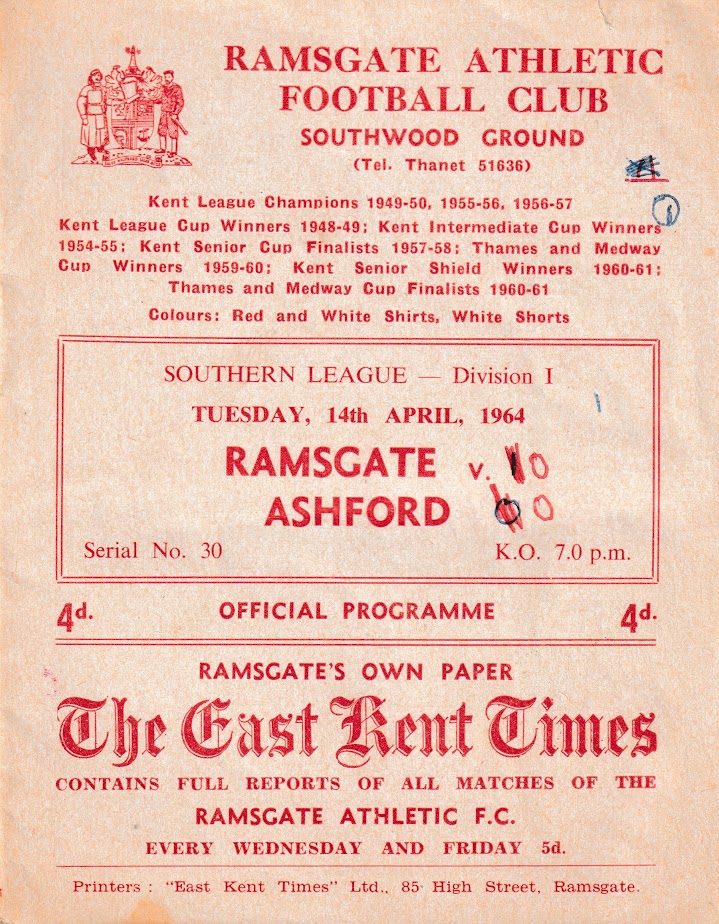 1963/64 16 Apr 1964 Ramsgate Athletic (A) Southern League Division One 0-0 653 Programme