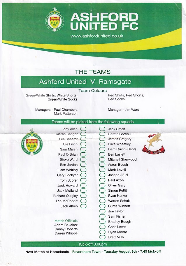 2011/12 06 Aug 2011 Ramsgate Athletic (H) Friendly 1-5 143 Programme