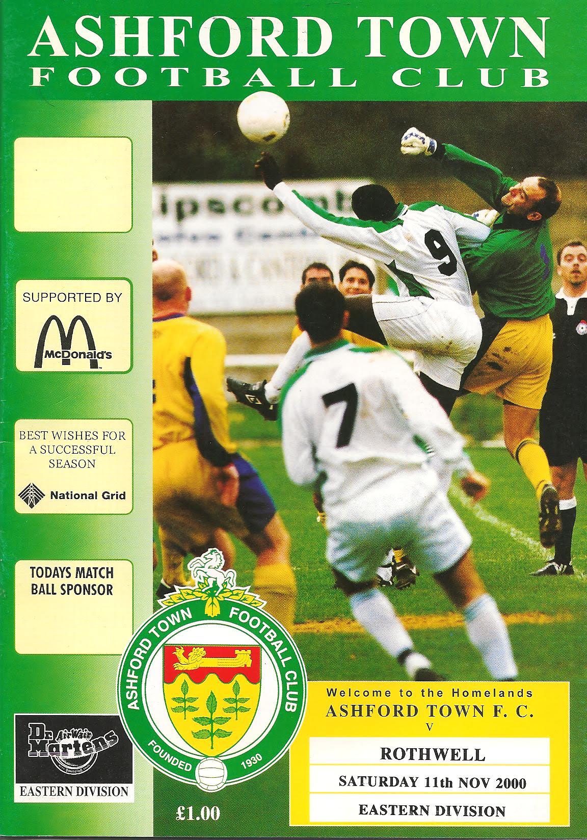 2000/01 11 Nov 2000 Rothwell Town (H) Southern League Division One Eastern 2-3 225 Programme