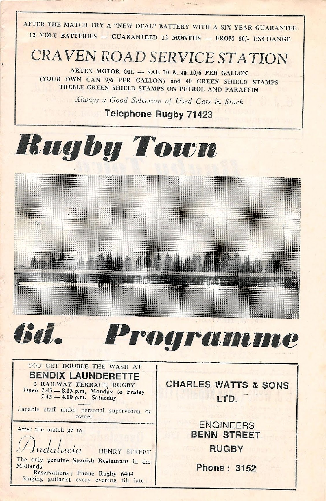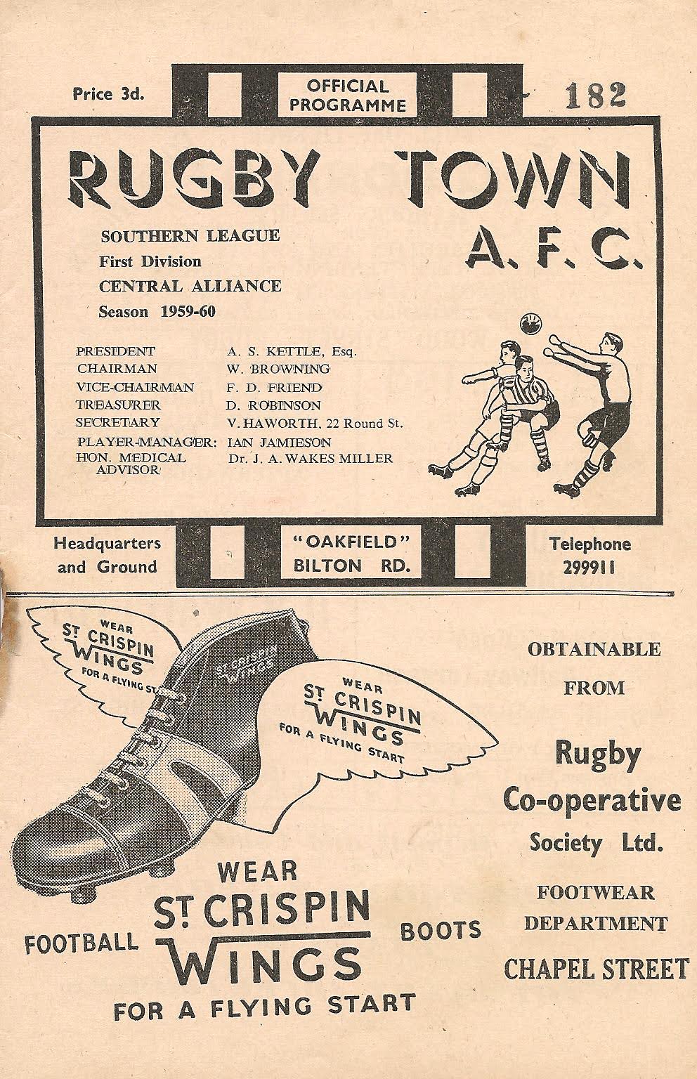 1959/60 23 Jan 1960 Rugby Town (A) Southern League Division One 3-5 500 Programme