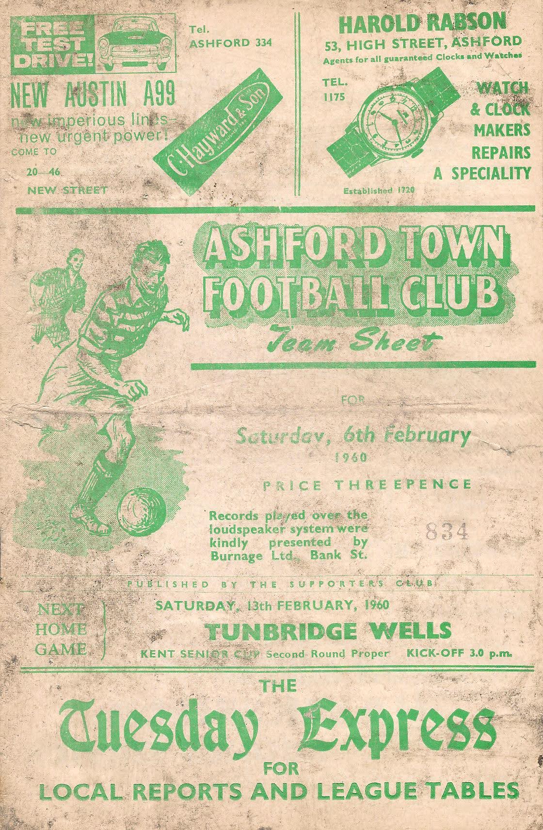 1959/60 06 Feb 1960 Rugby Town (H) Southern League Division One 2-1 1,136 Programme