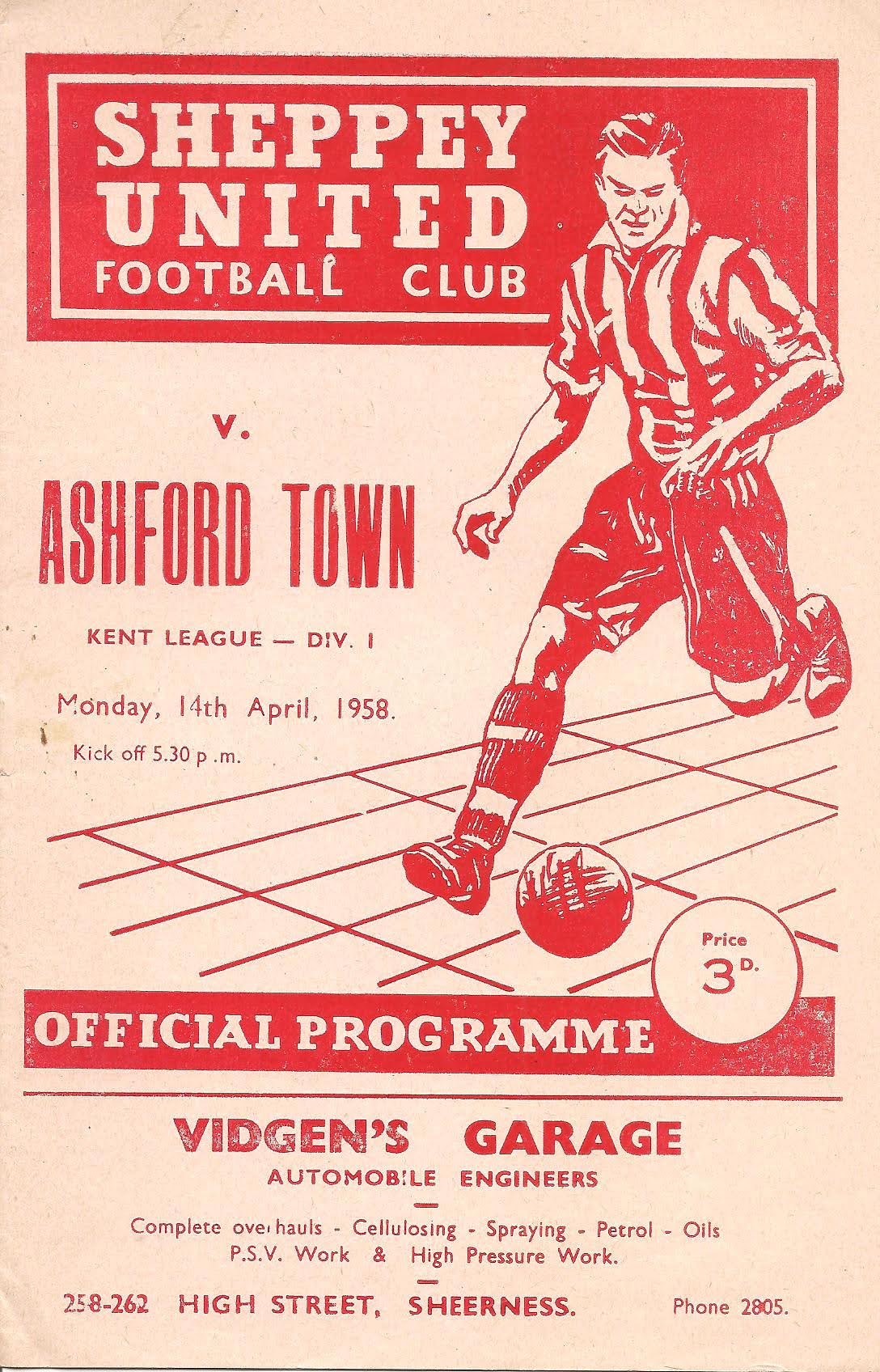 1957/58 14 Apr 1958 Sheppey United (A) Kent League Division 1 1-6 --- Programme