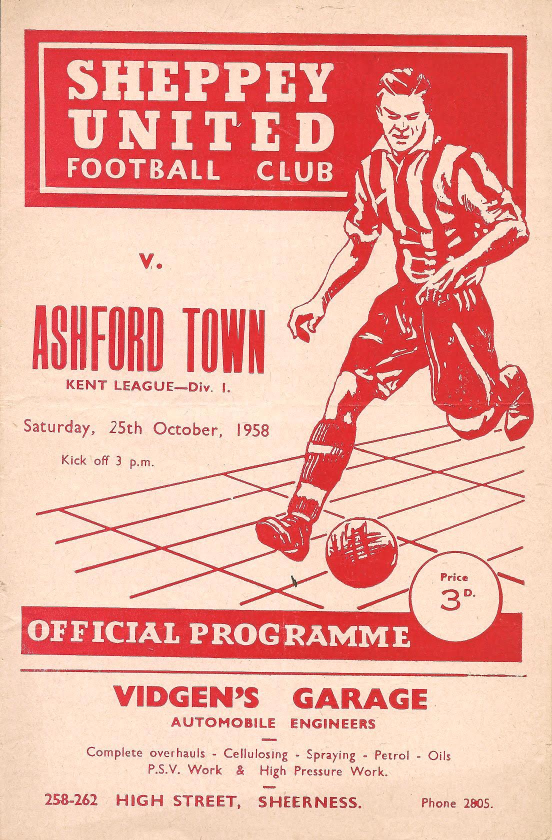 1958/59 25 Oct 1958 Sheppey United (A) Kent League Division 1 1-0 --- Programme
