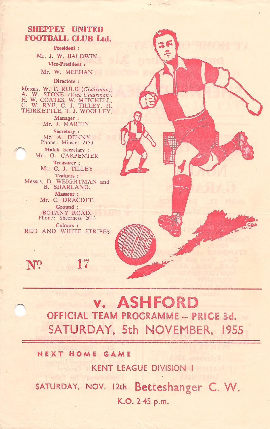 1955/56 05 Nov 1955 Sheppey United (A) Kent League Division 1 2-1 --- Programme