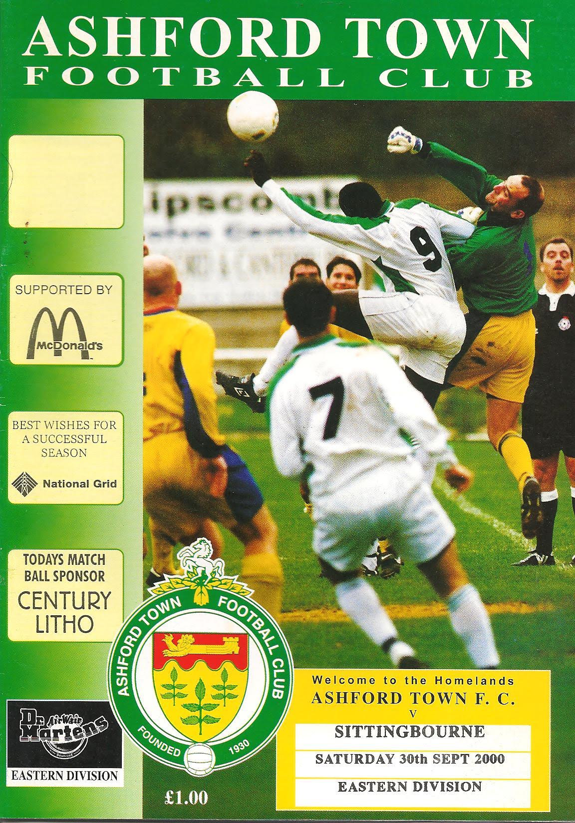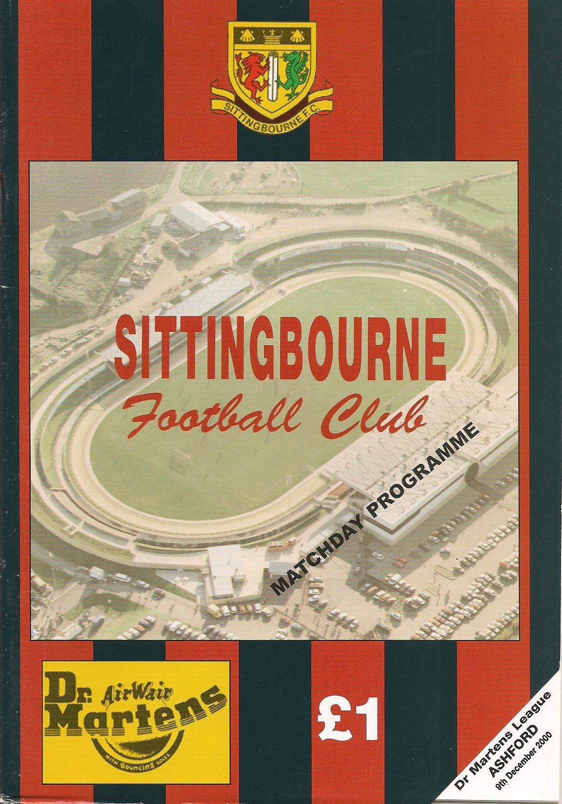 2000/01 09 Dec 2000 Sittingbourne (A) Southern League Division One Eastern p-p --- Programme