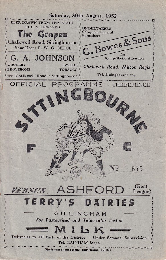 1952/53 30 Aug 1952 Sittingbourne (A) Kent League Division 1 1-4 --- Programme
