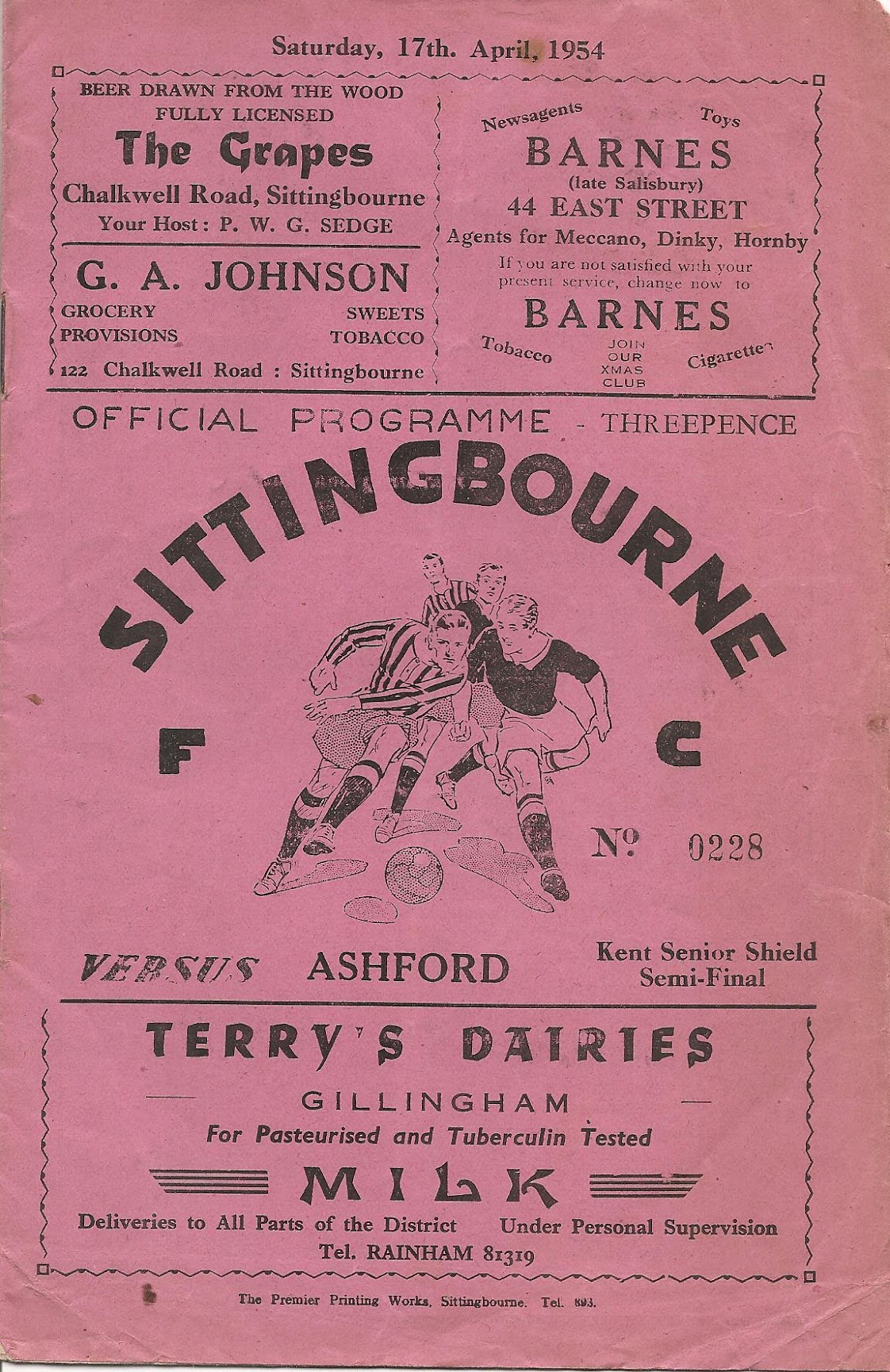 1950/51 13 Jan 1951 Sittingbourne (A) Kent League Division 1 3-2 --- Programme