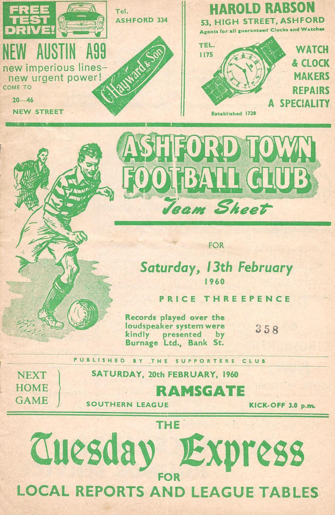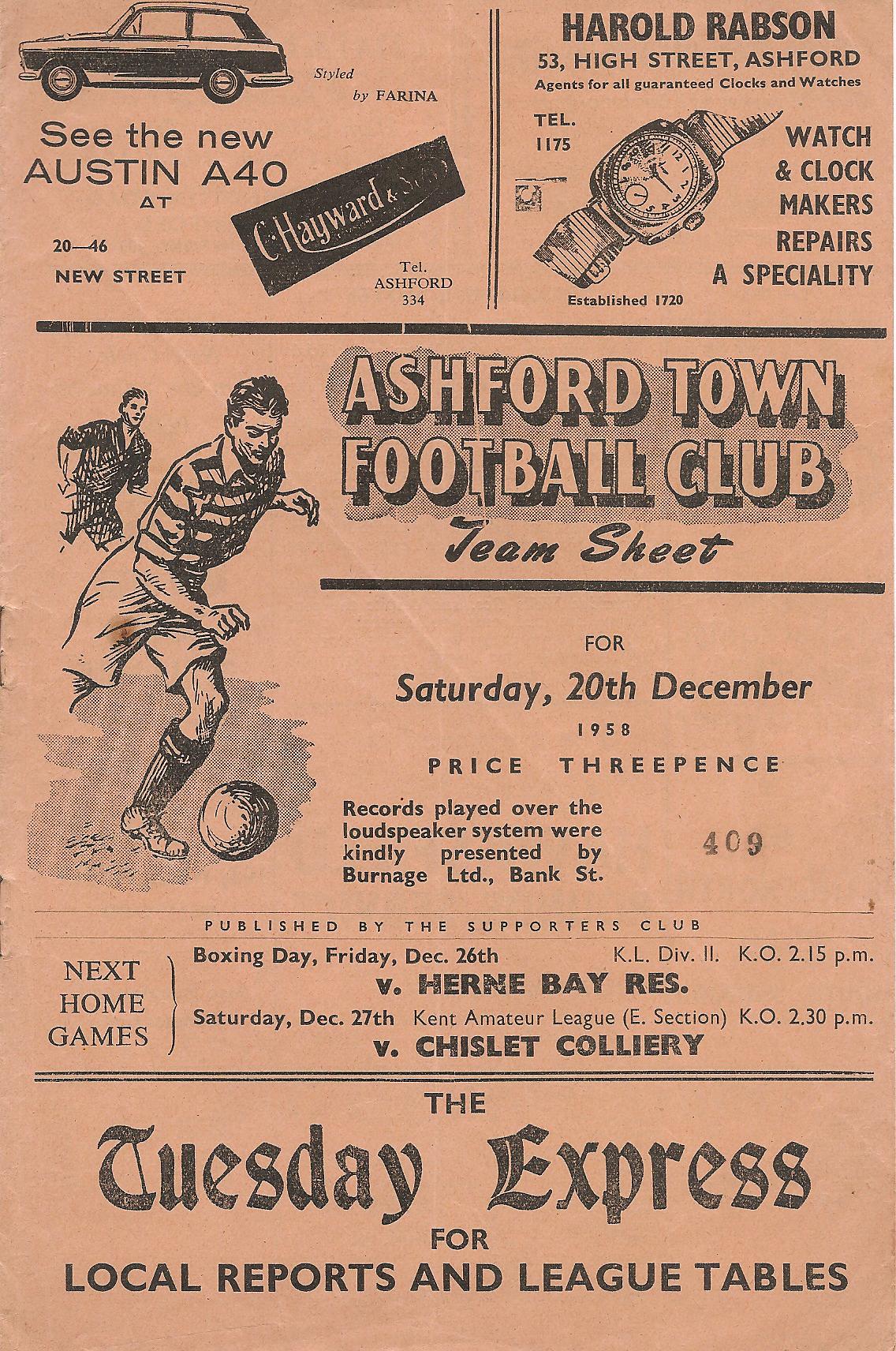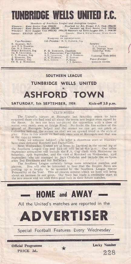 1958/59 13 Dec 1958 Tunbridge Wells United (A) Kent League Division 1 1-3 --- Programme