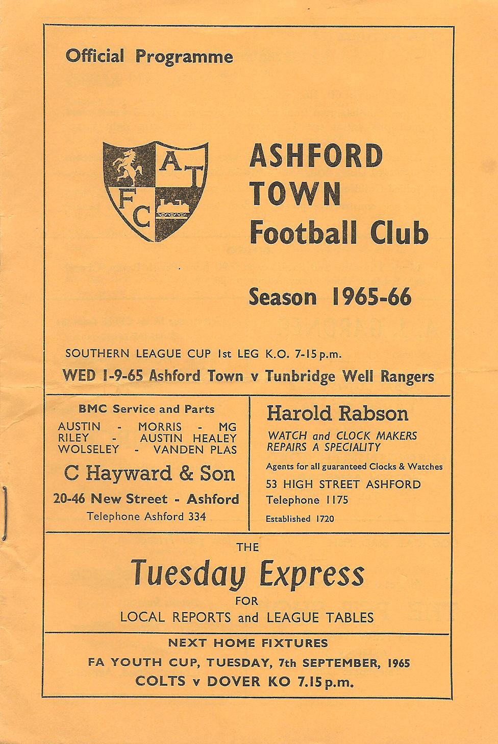 1965/66 01 Sep 1965 Tunbridge Wells Rangers (H) Southern League Cup 2-3 653 Programme