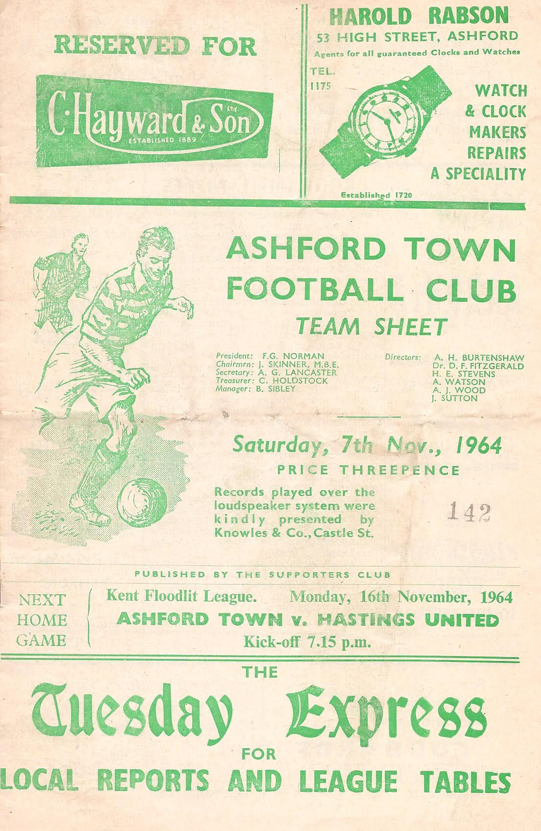 1964/65 07 Nov 1964 Tunbridge Wells Rangers (H) Southern League Division One 5-2 554 Programme