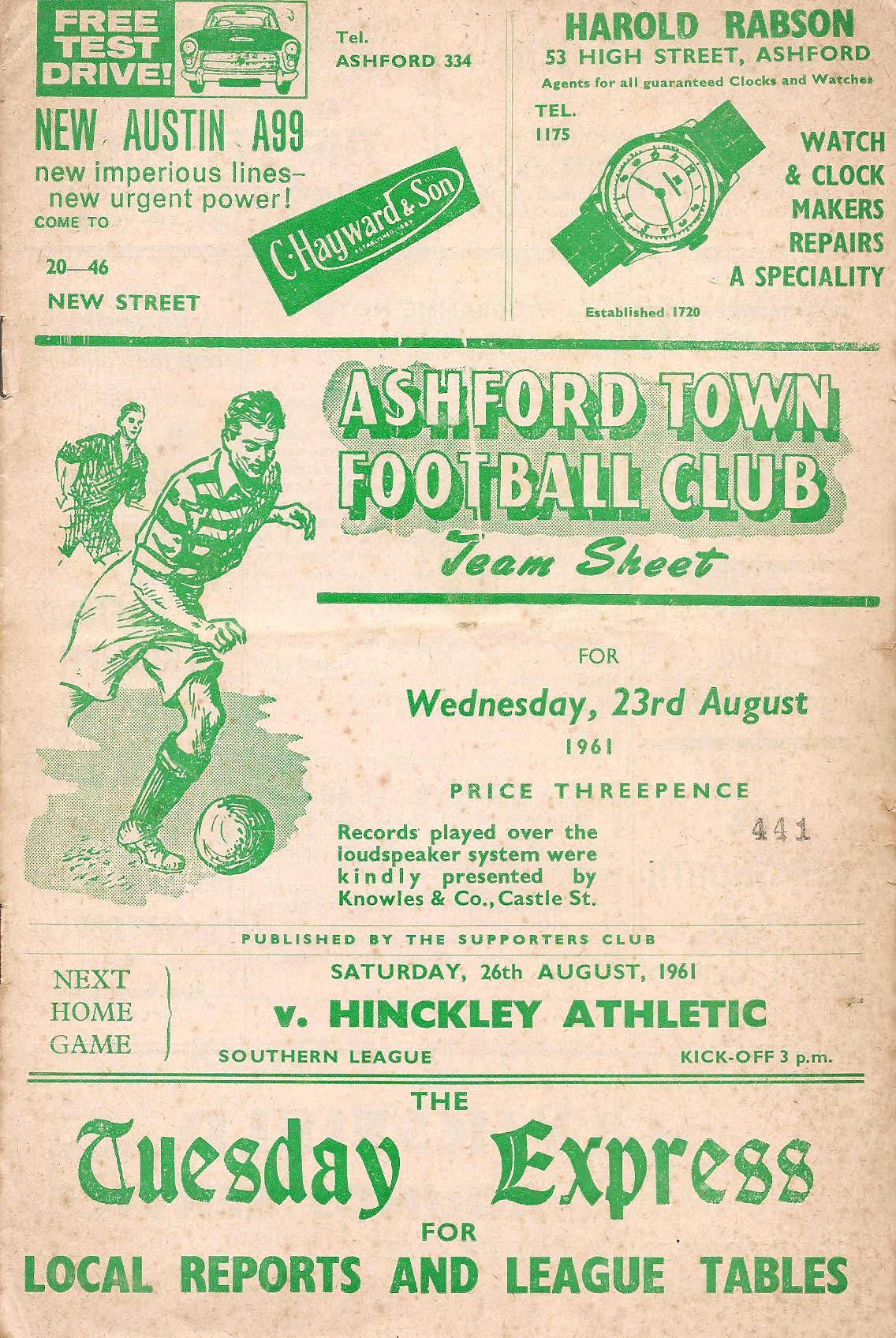 1961/62 23 Aug 1961 Tunbridge Wells United (H) Southern League Division One 1-1 1,692 Programme