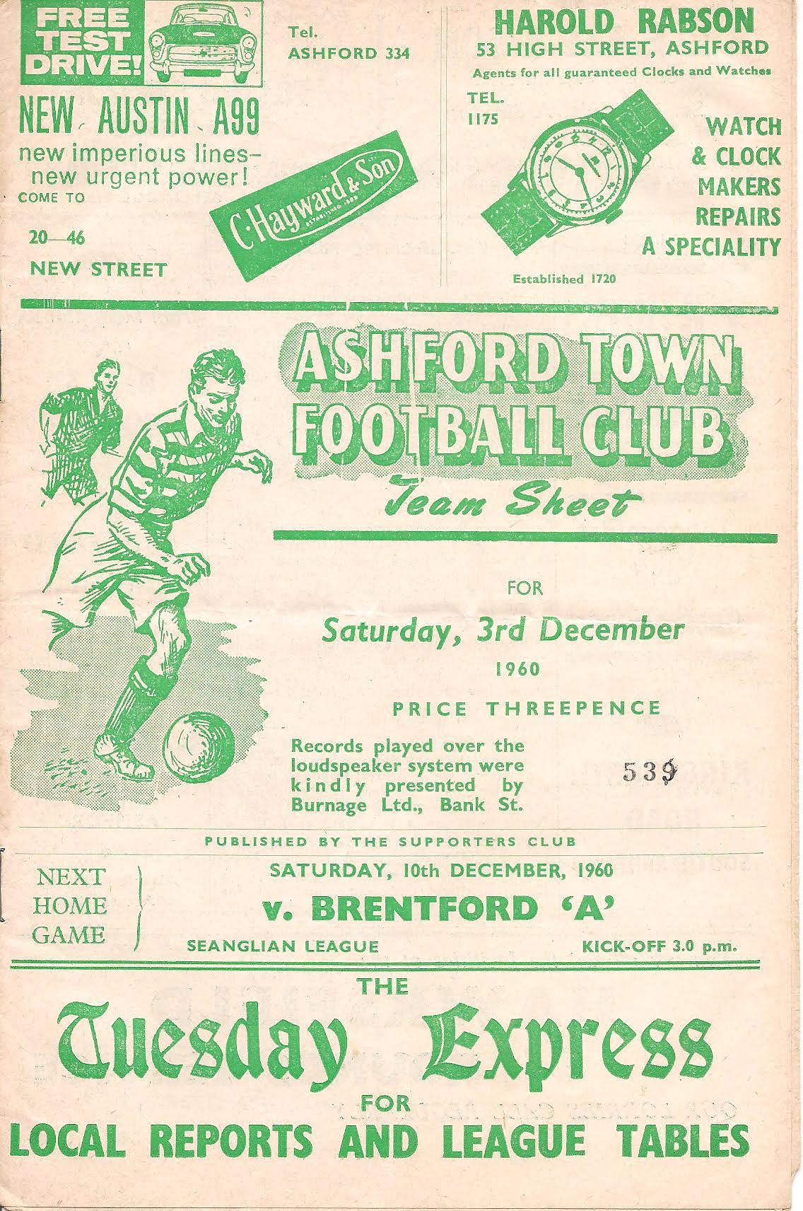 1960/61 03 Dec 1960 Tunbridge Wells United (H) Southern League Division One 1-0 622 Programme