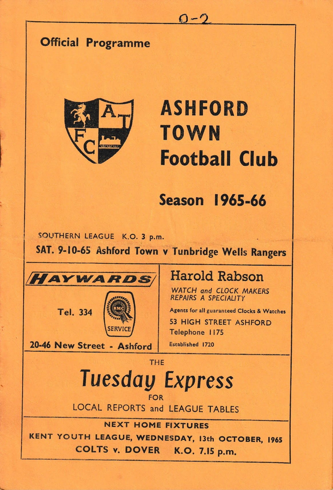 1965/66 09 Oct 1965 Tunbridge Wells Rangers (H) Southern League Division One 0-2 689 Programme