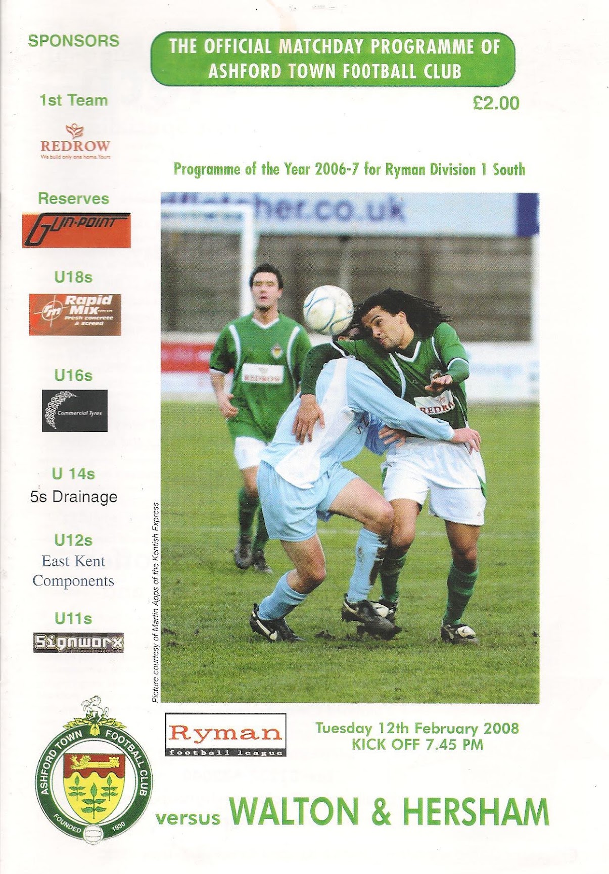 2007/08 12 Feb 2008 Walton and Hersham (H) Isthmian Division One South 1-3 180 Programme