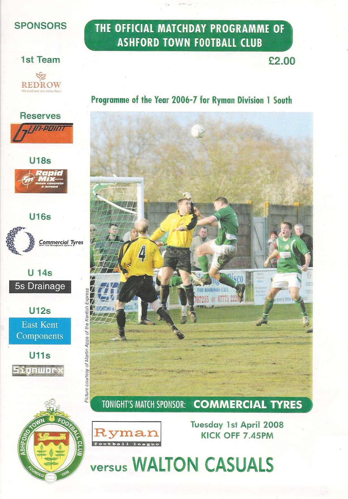 2007/08 01 Apr 2008 Walton Casuals (H) Isthmian Division One South p-p --- Programme
