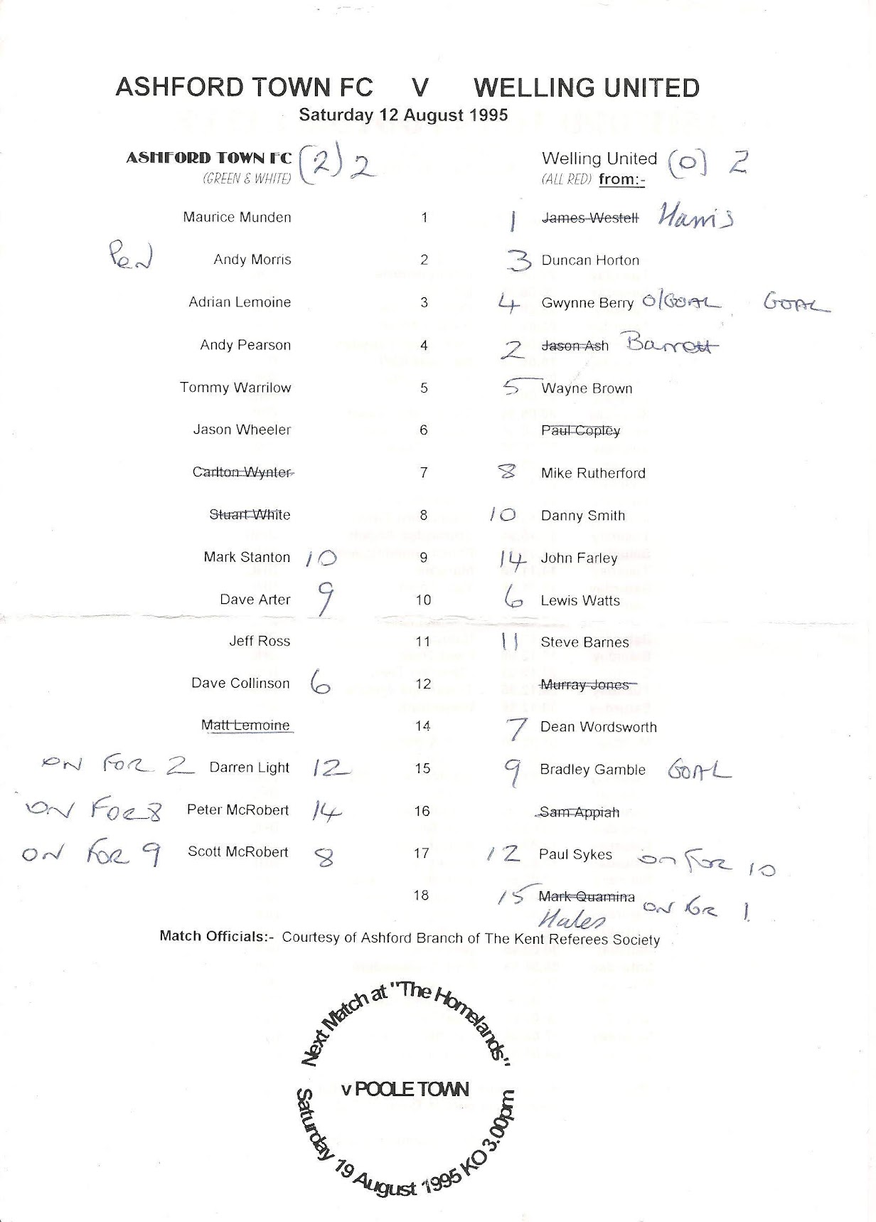 1995/96 12 Aug 1995 Welling United (H) Friendly 2-2 --- Programme