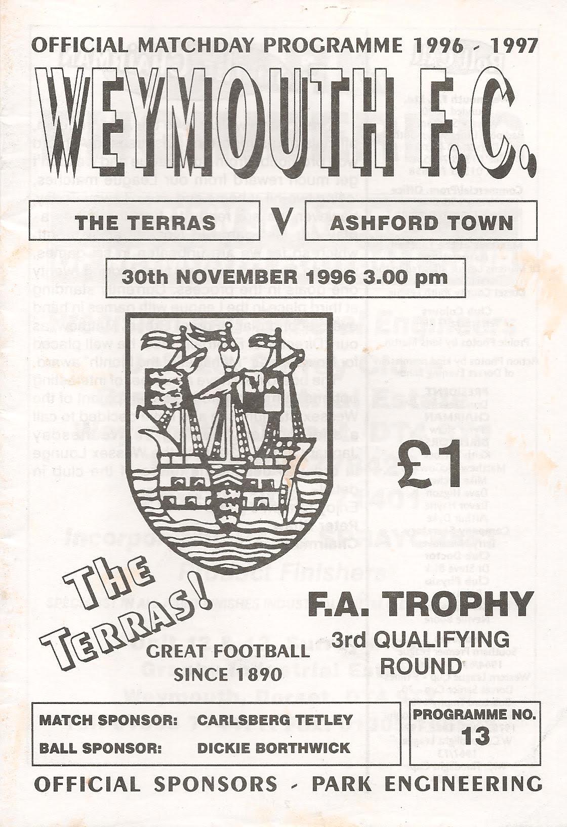 1996/97 30 Nov 1996 Weymouth (A) FA Trophy 0-2 849 Programme