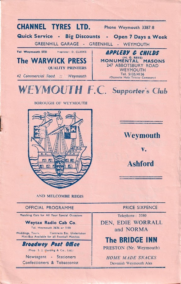 1970/71 30 Jan 1971 Weymouth (A) Southern League Premier Division 1-5 1,061 Programme