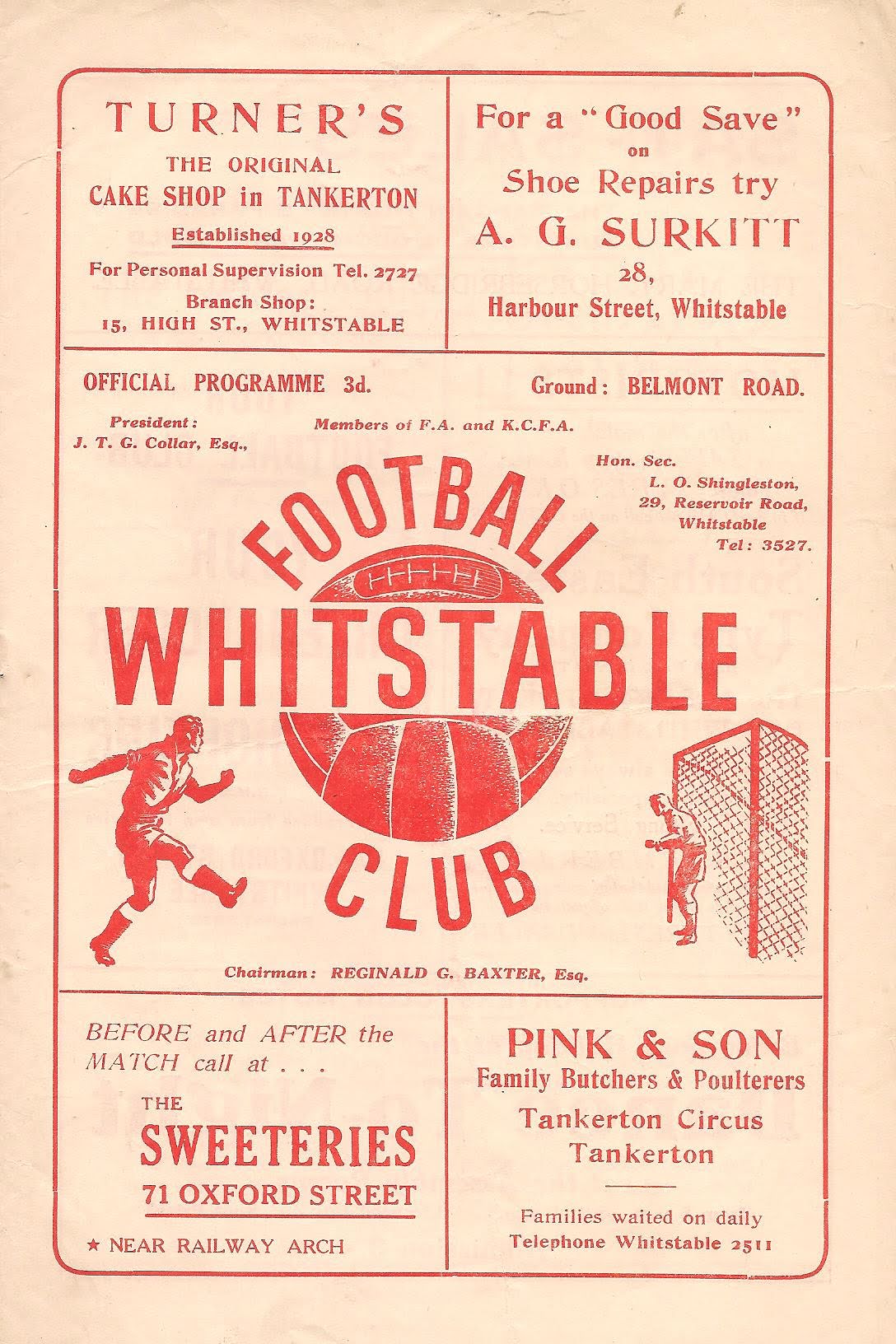 1950/51 20 Jan 1951 Whitstable Town (H) Kent Senior Cup 3-0 --- Programme