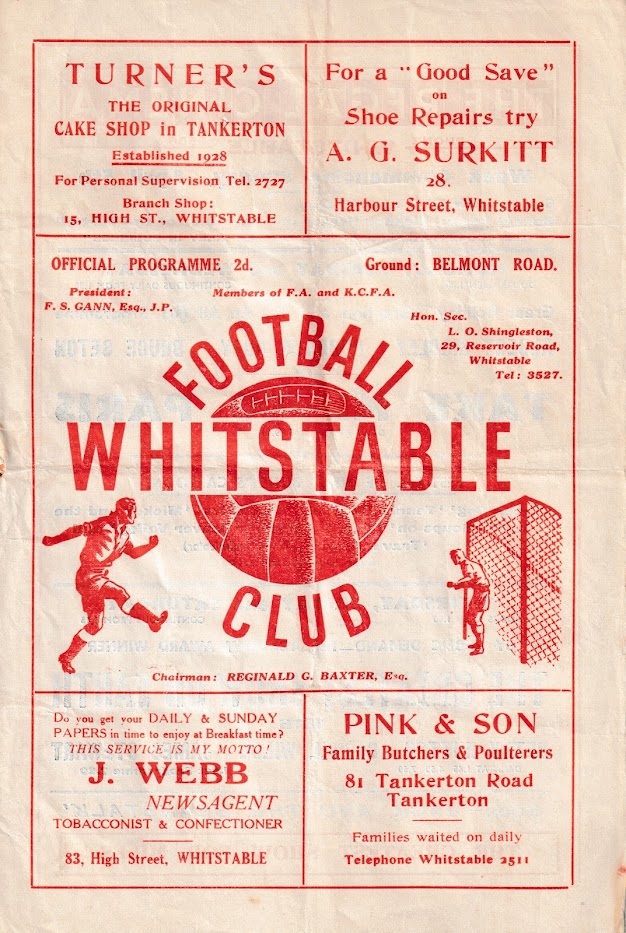 1952/53 04 Apr 1953 Whitstable Town (A) Kent League Division 1 3-0 --- Programme