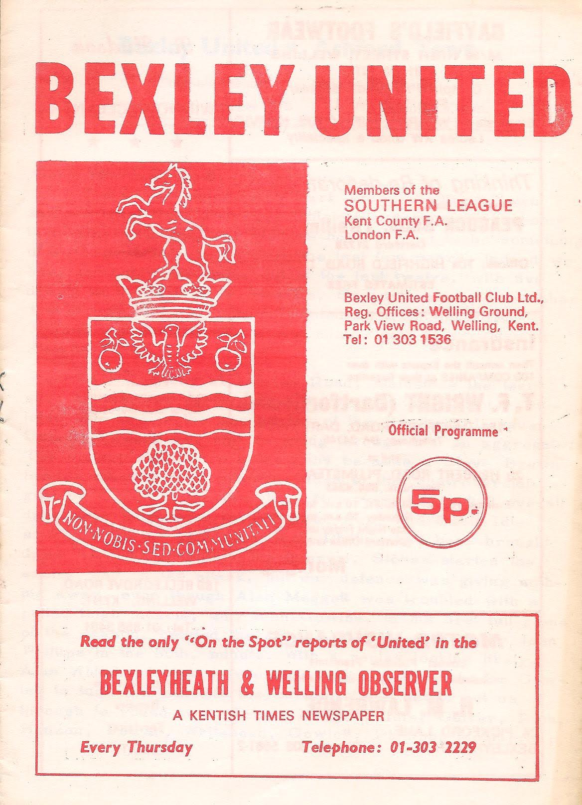 1974/75 17 Apr 1975 Bexley United (H) Southern League Division One South 2-1 283 Programme