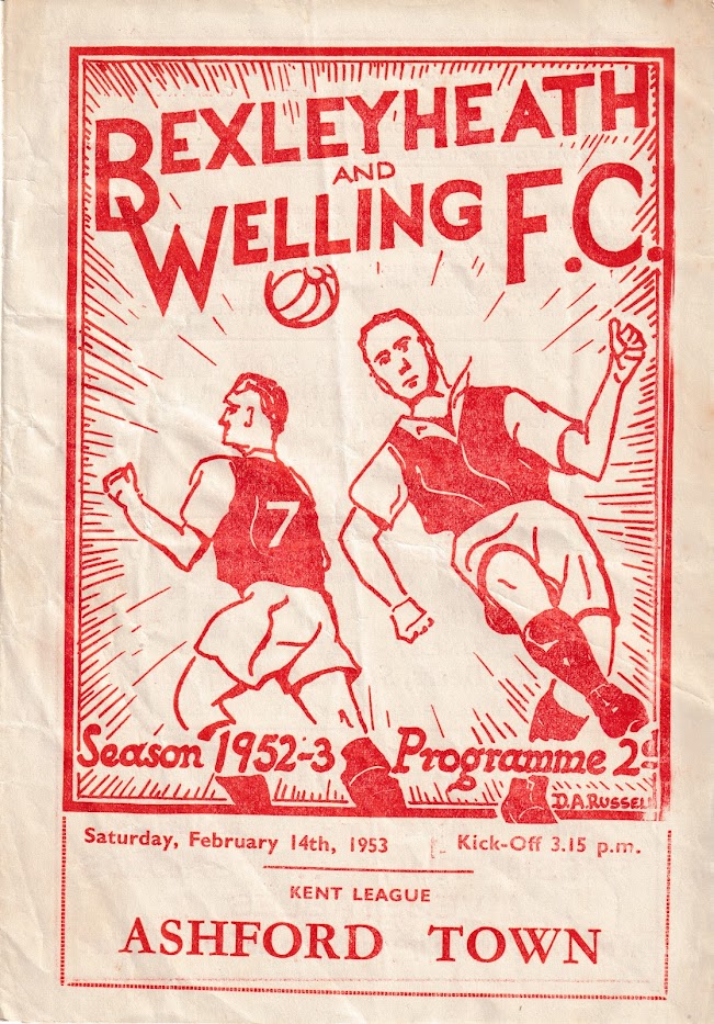 1952/53 14 Feb 1953 Bexleyheath and Welling (A) Kent League Division 1 2-2 --- Programme