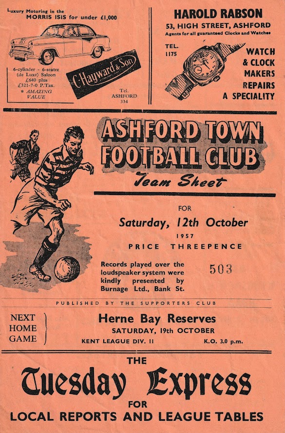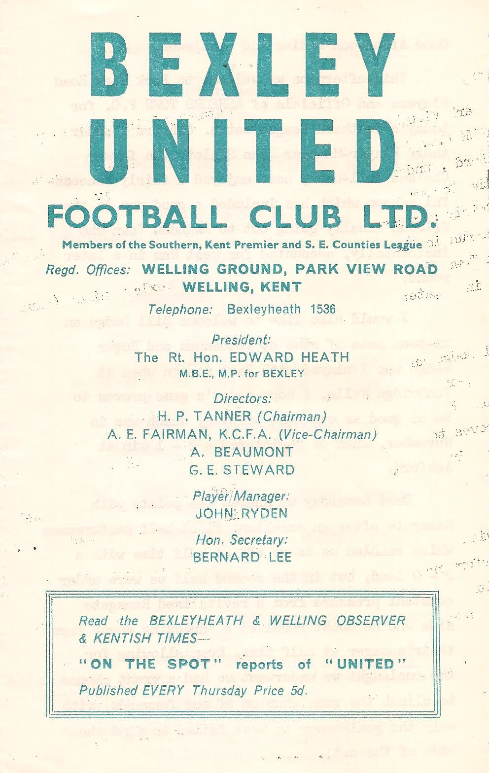 1957/58 12 Oct 1957 Bexleyheath and Welling (H) Kent League Division 1 0-2 --- Programme