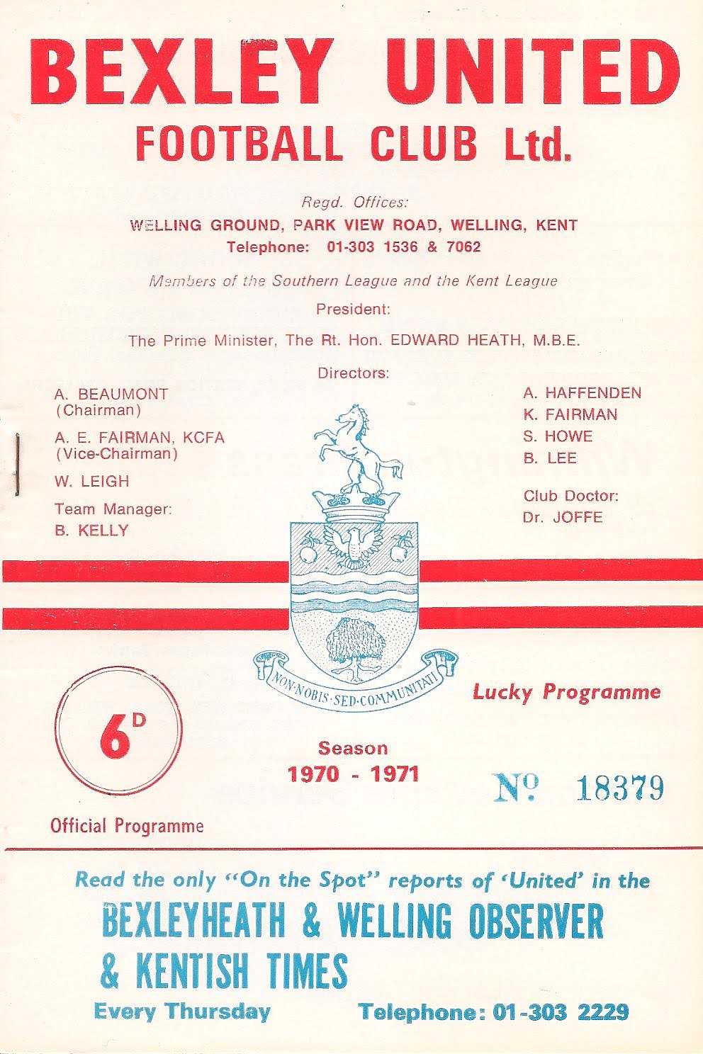 1970/71 11 Nov 1970 Bexley United (H) Kent Floodlight Cup 1-1 352 Programme