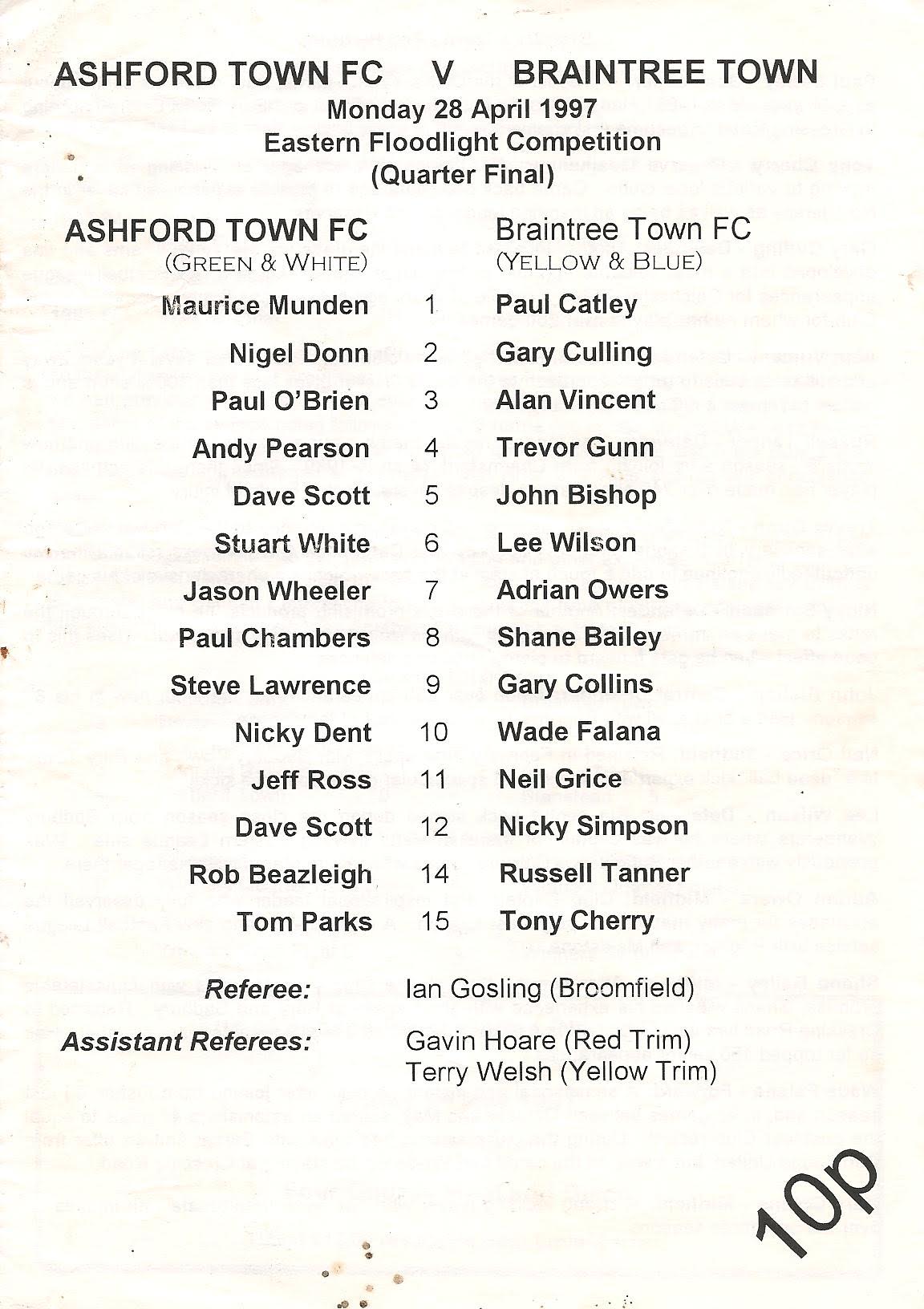 1996/97 28 Apr 1997 Braintree Town (H) Eastern Floodlight Cup 1-2 248 Programme