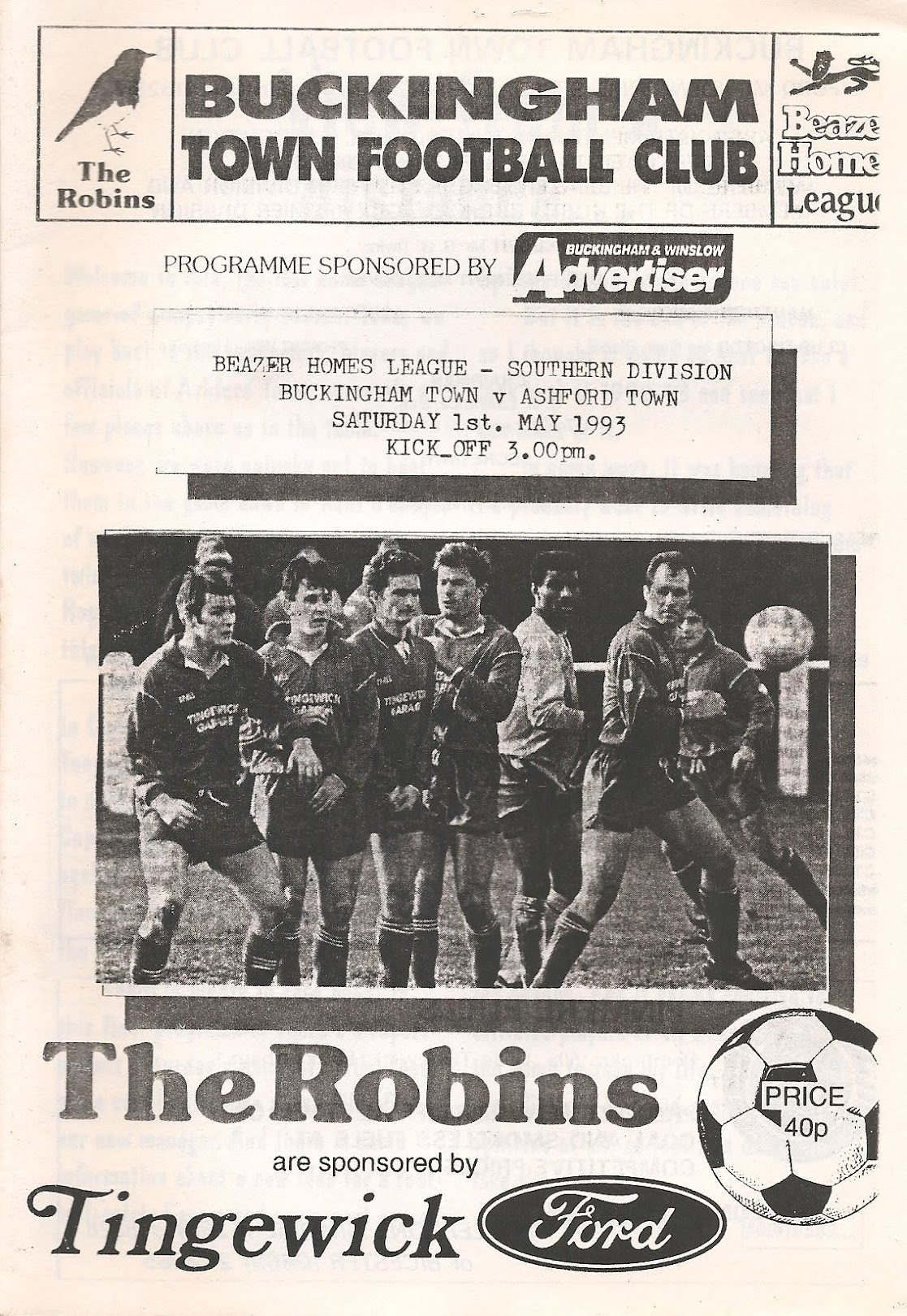 1992/93 01 May 1993 Buckingham Town (A) Southern League Southern Division 2-0 --- Programme