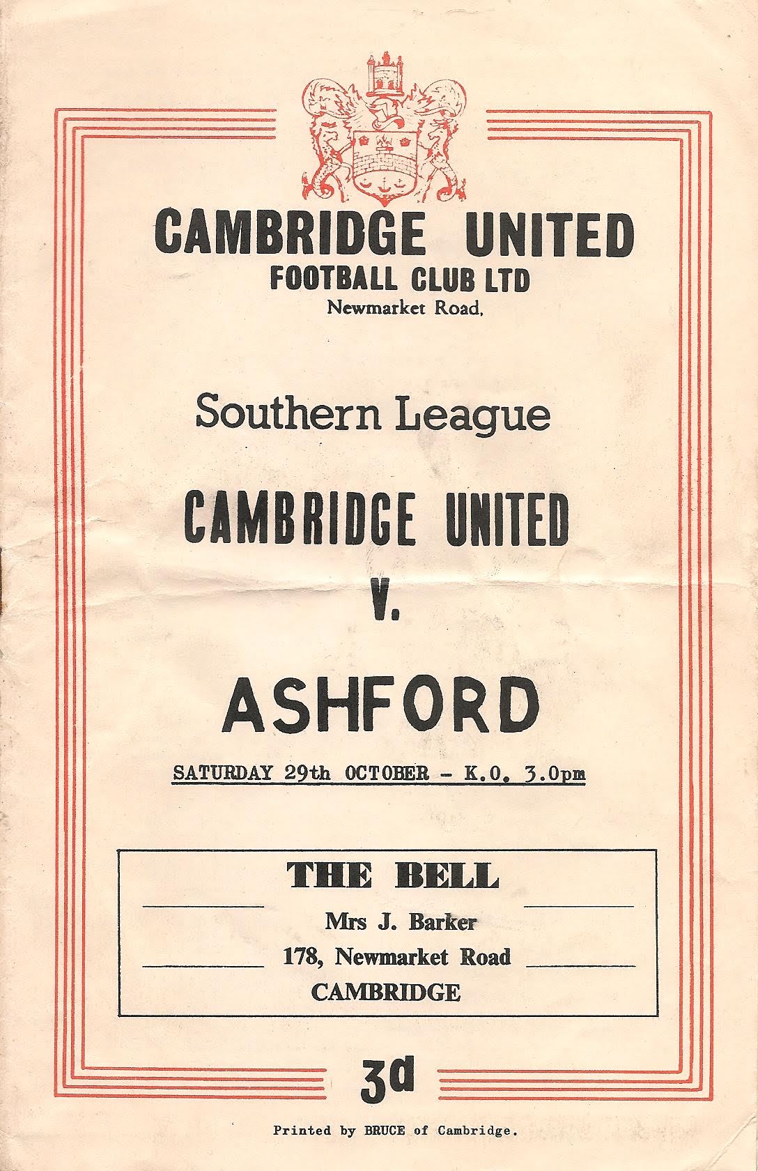 1960/61 29 Oct 1960 Cambridge United (A) Southern League Division One 1-2 1,522 Programme