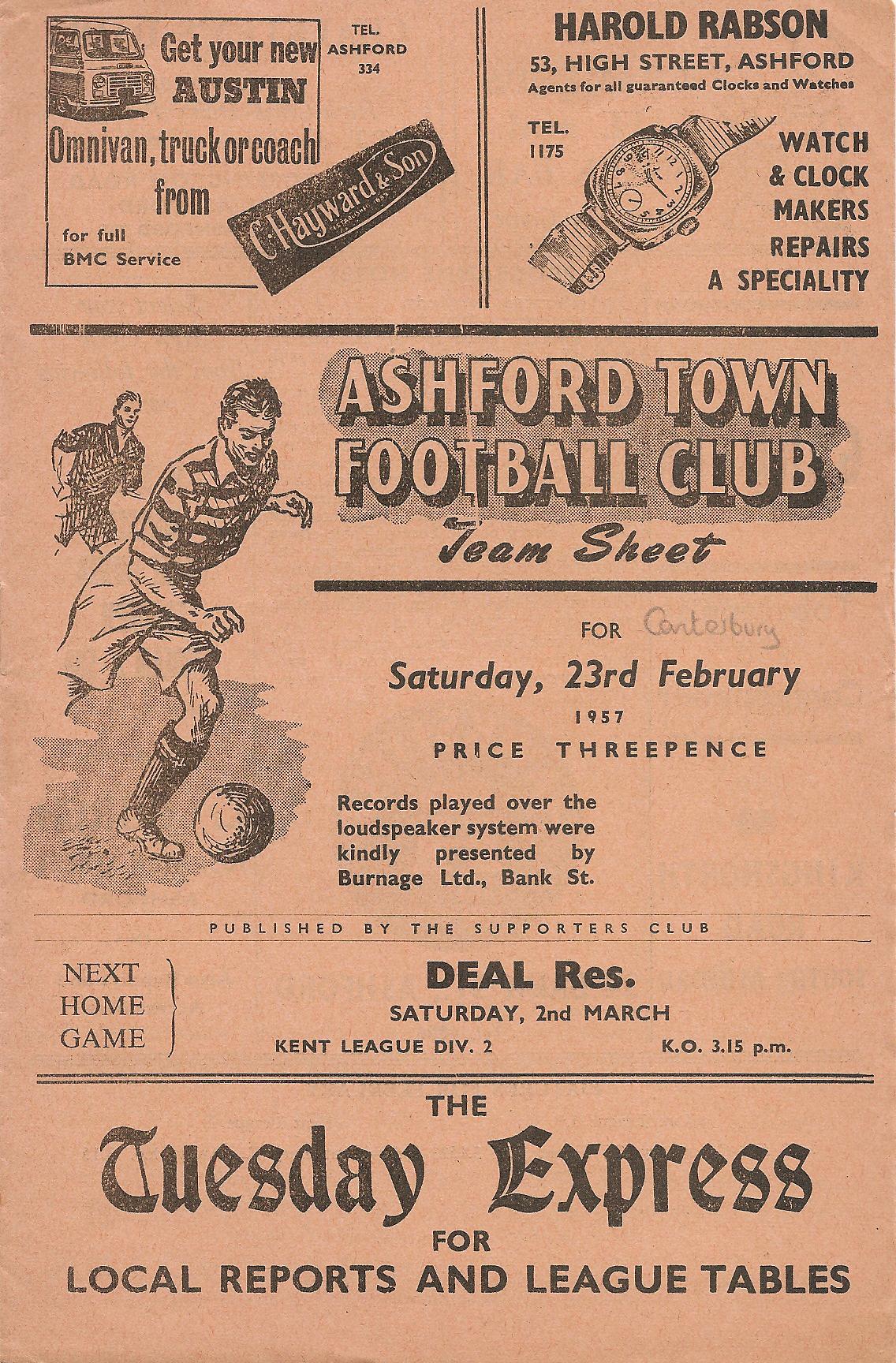 1956/57 23 Feb 1957 Canterbury City (H) Kent League Division 1 0-1 --- Programme