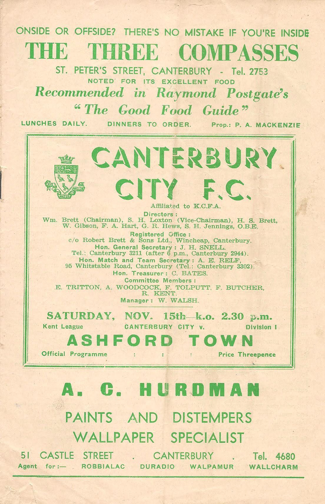 1952/53 15 Nov 1952 Canterbury City (A) Kent League Division 1 1-3 --- Programme