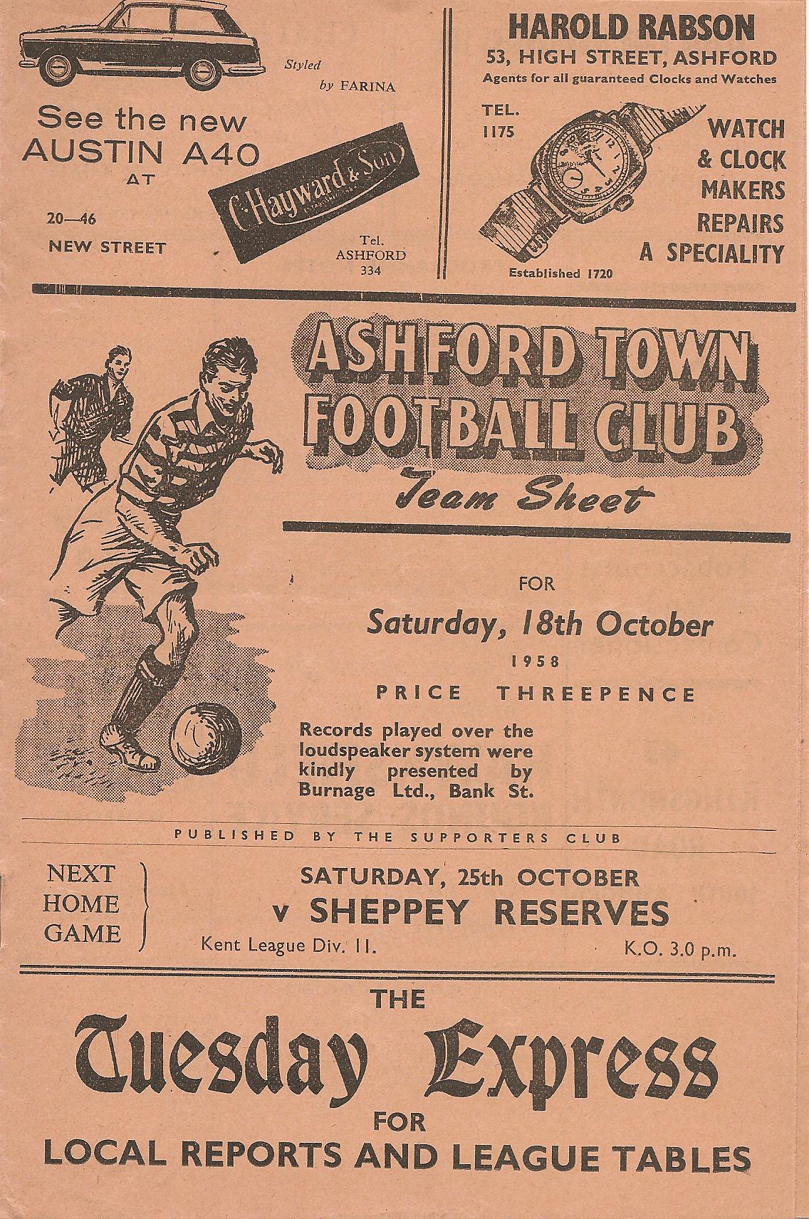 1958/59 30 Aug 1958 Canterbury City (A) Kent League Division 1 2-3 2,300 Programme