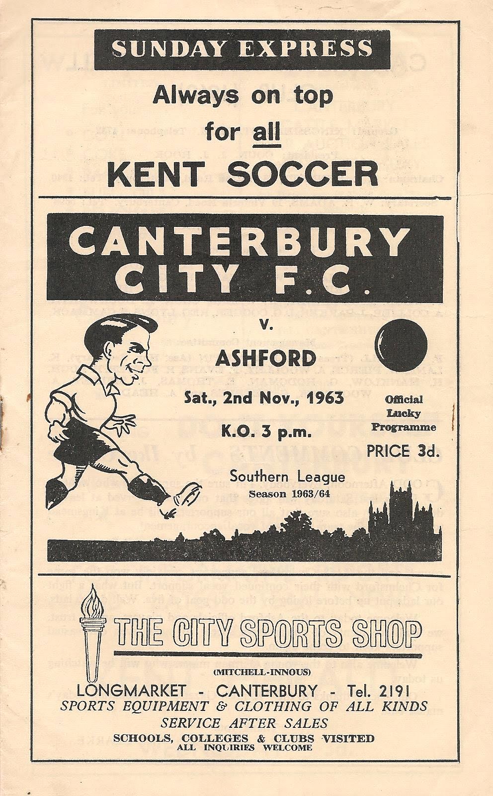 1963/64 02 Nov 1963 Canterbury City (A) Southern League Division One 1-1 1,051 Programme