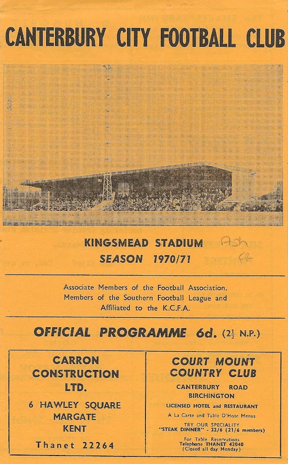 1970/71 05 Aug 1970 Canterbury City (A) Friendly 2-1 --- Programme