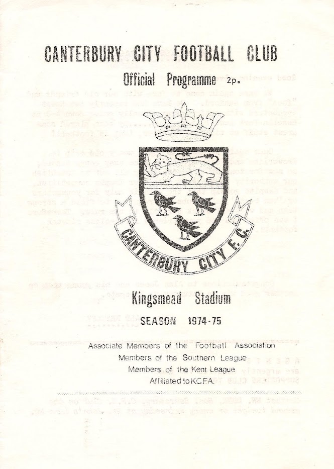 1974/75 28 Mar 1975 Canterbury City (A) Southern League Division One South 1-0 225 Programme