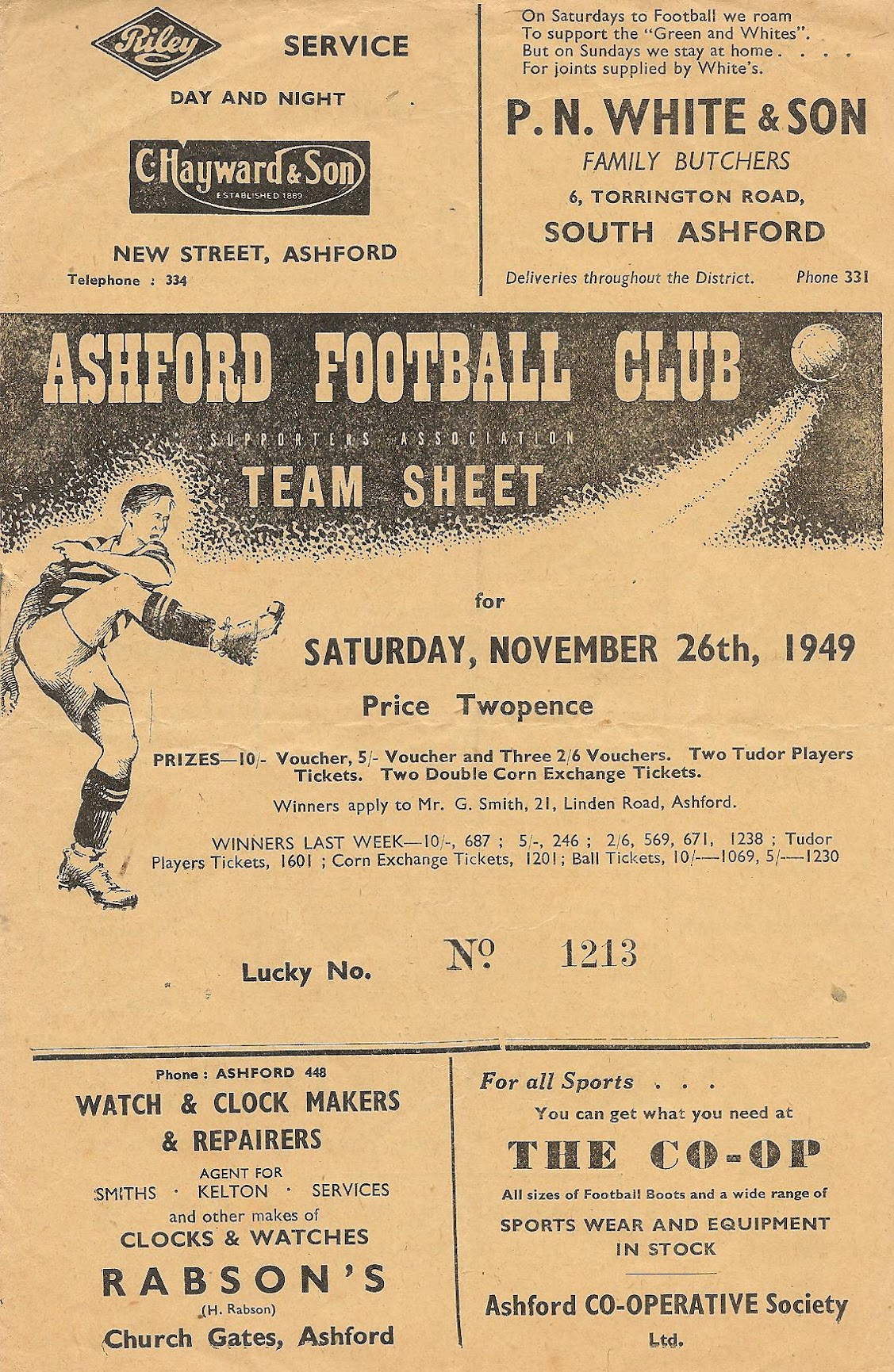 1949/50 26 Nov 1949 Canterbury City (H) Kent League Division 1 5-2 2,199 Programme